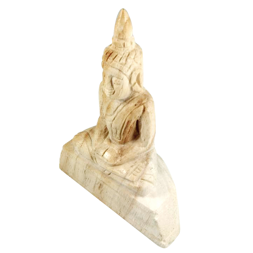 Natural White Brown Petrified Wood 201.42 Ct. Buddha Carved Shape 73 x 55 Mm Gem