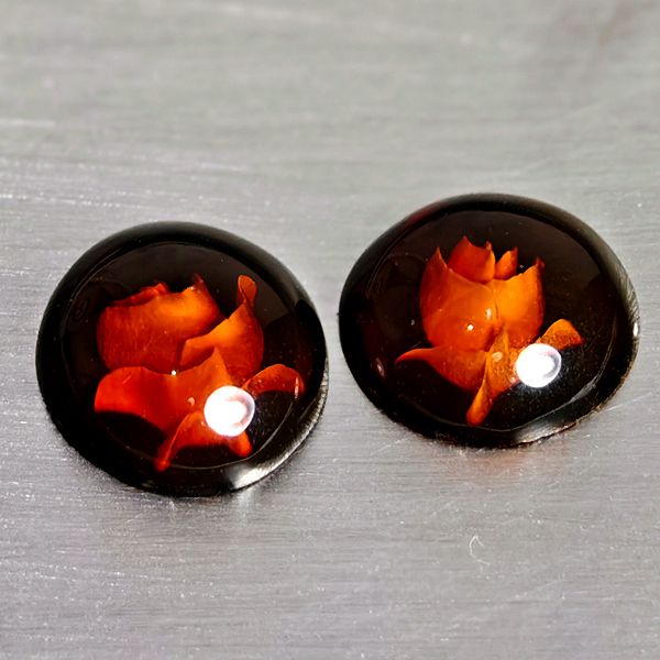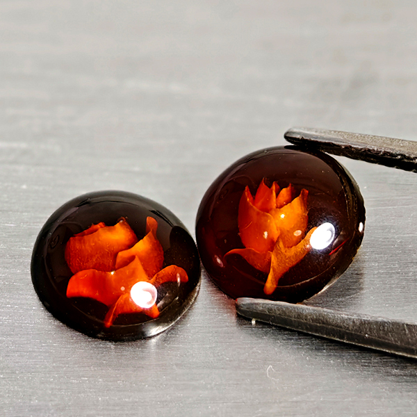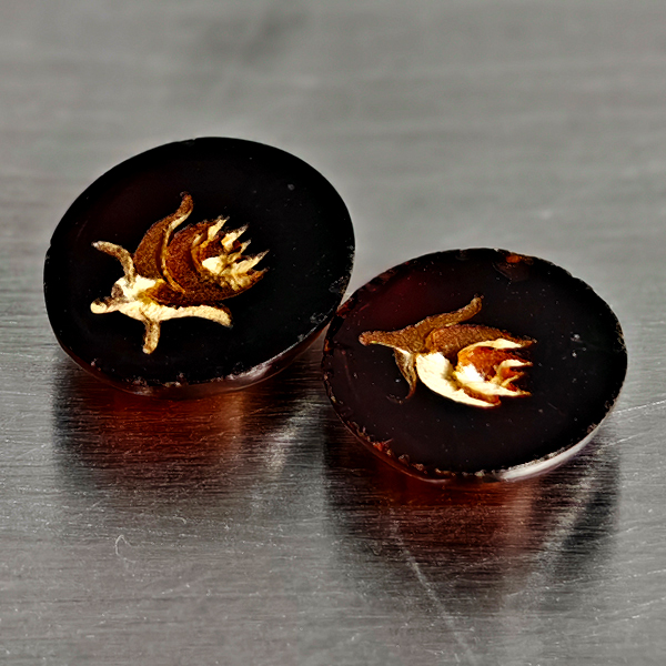 Natural Brown Yellow Amber 0.96 Ct. 2 Pcs Flower Carving In Mixed Shape Cabochon