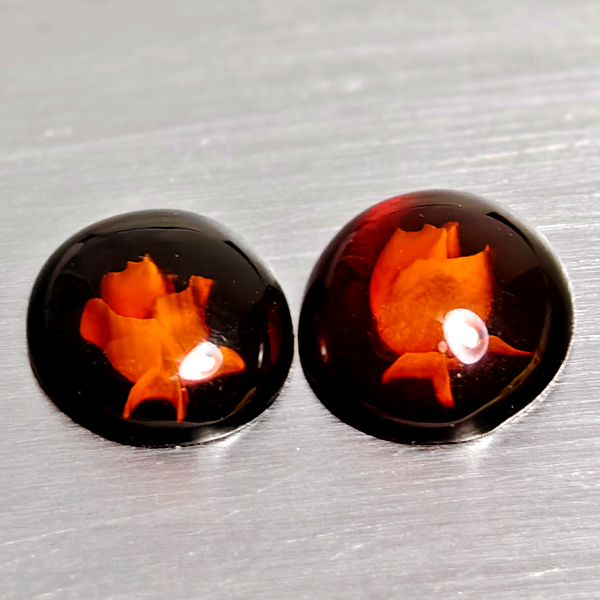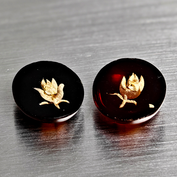Natural Brown Yellow Amber 0.65 Ct. 2 Pcs Flower Carving In Oval Cabochon Shape