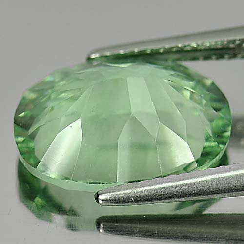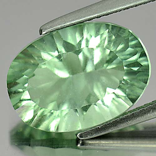 7.42 Ct. Oval Concave Cut 14.3 x 10.3 Mm. Natural Gem Green Fluorite Unheated