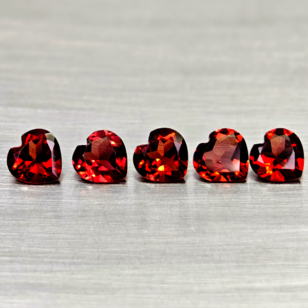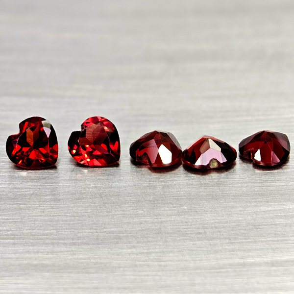 Natural Purplish Red Rhodolite Garnet 4.33 Ct. 5 Pcs Heart Shape 6 x 5.9 Mm Gems