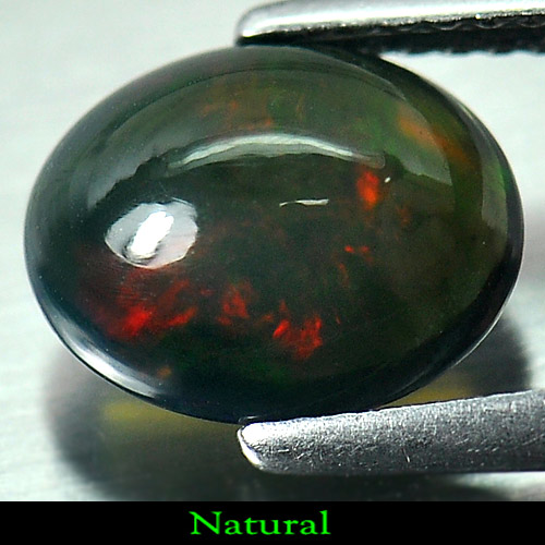 Play Of Color Rainbow Fire Red Black Opal 1.39Ct. Oval Cabochon Natural Gemstone