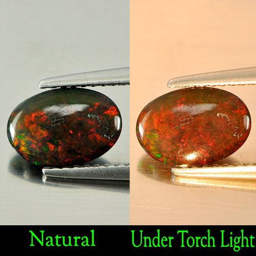 Fire Red Black Opal 0.97 Ct. Oval Cabochon Shape 9.7 x 6.6 Mm. Natural Gemstone