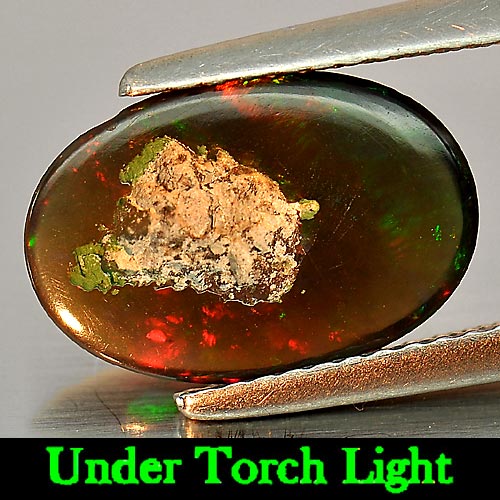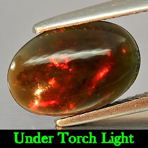 Natural Gem Oval Cabochon 1.30 Ct. Play Of Color Rainbow Fire Red Black Opal
