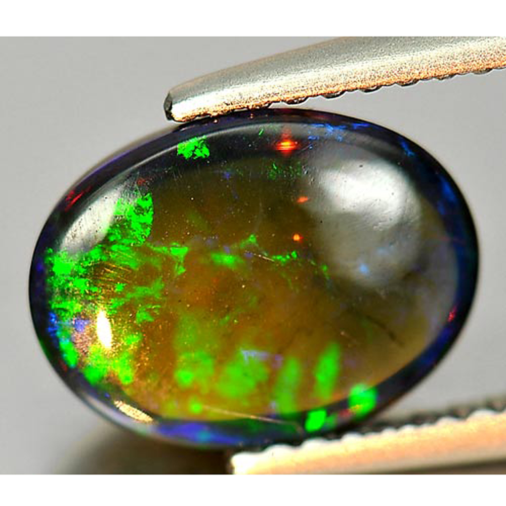 Play Of Color Rainbow Fire Red Black Opal 1.54 Ct Oval Cabochon Natural Gemstone