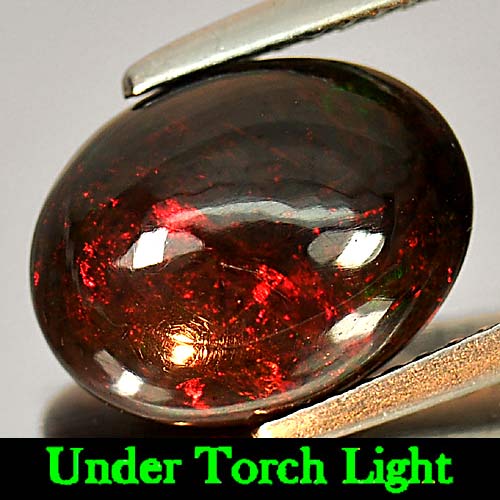 Fire Red Black Opal 2.55 Ct. Oval Cabochon Shape 11.8 x 9 Mm. Natural Gemstone