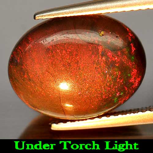 6.59 Ct. Oval Cabochon Natural Gem Play Of Color Rainbow Fire Red Black Opal