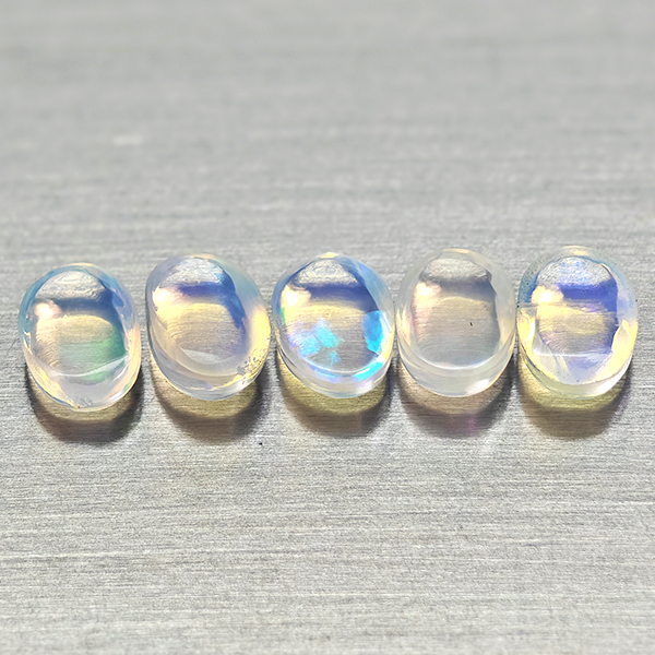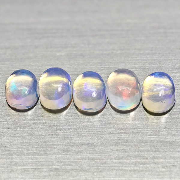 Natural Multi Color Opal 1.65 Ct. 5 Pcs Oval Cabochon Shape 6.1 x 4.1 Mm Gems