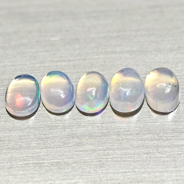 Natural Multi Color Opal 1.49 Ct. 5 Pcs Oval Cabochon Shape 5.9 x 4.1 Mm Gems