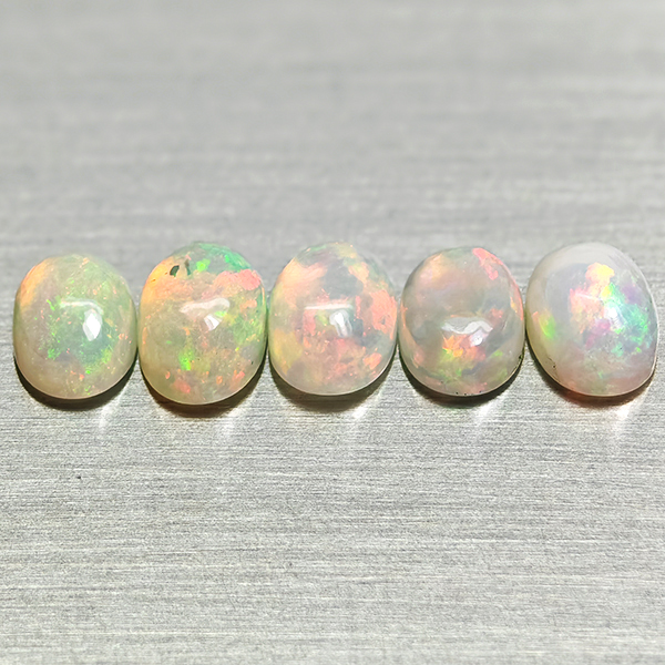 Natural Multi Color Opal 1.78 Ct. 5 Pcs Oval Cabochon Shape 6.1 x 4.1 Mm Gems