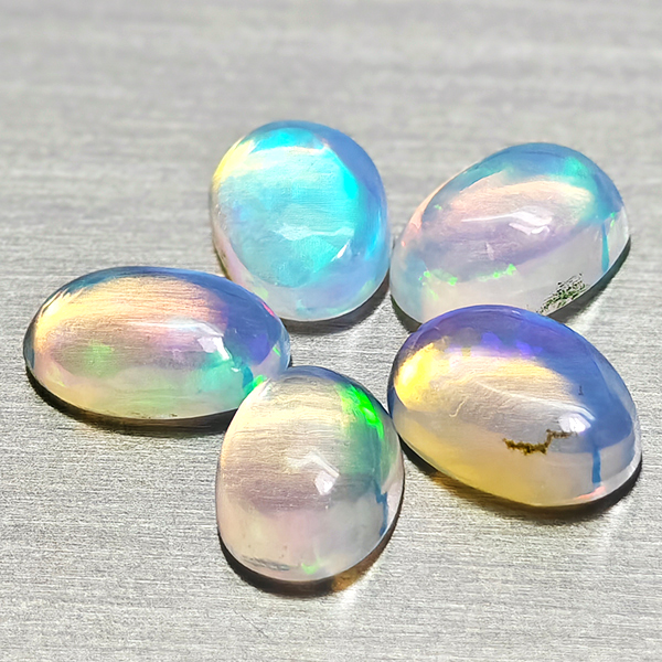 Natural Multi Color Opal 1.41 Ct. 5 Pcs Oval Cabochon Shape 6.1 x 4.3 Mm Gems