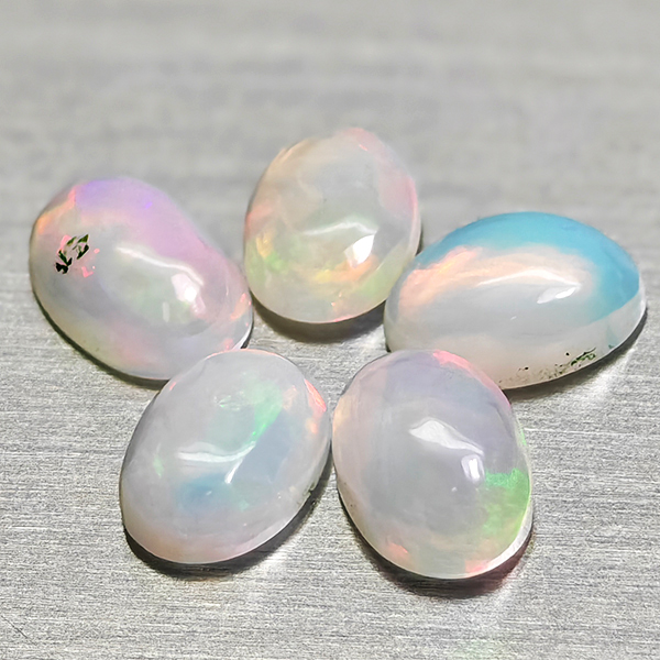 Natural Multi Color Opal 1.46 Ct. 5 Pcs Oval Cabochon Shape 6.1 x 4.2 Mm Gems