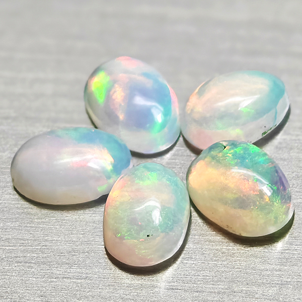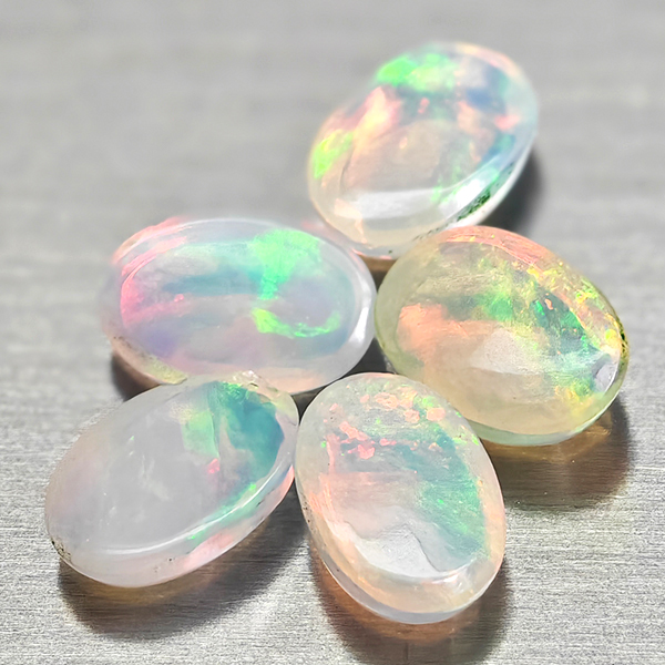 Natural Multi Color Opal 1.54 Ct. 5 Pcs Oval Cabochon Shape 6 x 4.1 Mm Gems
