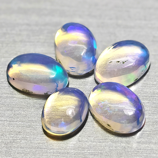 Natural Multi Color Opal 1.39 Ct. 5 Pcs Oval Cabochon Shape 6 x 4.2 Mm Gems