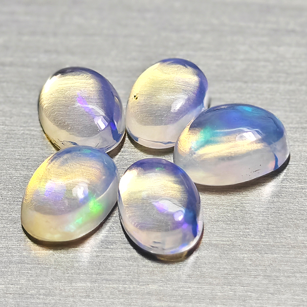 Natural Multi Color Opal 1.59 Ct. 5 Pcs Oval Cabochon Shape 6.1 x 4.1 Mm Gems