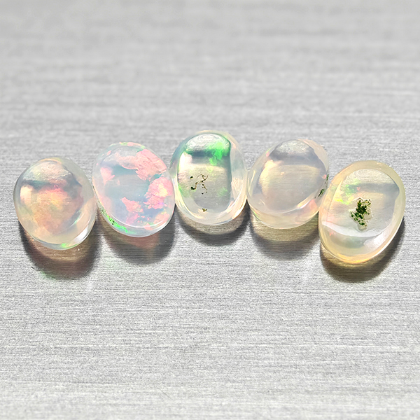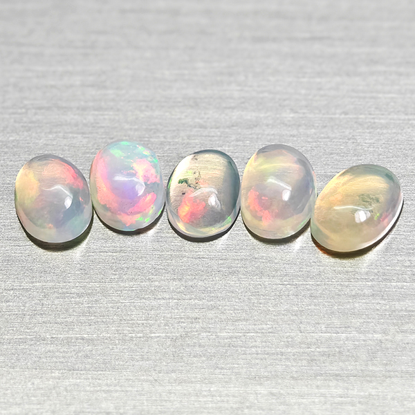 Natural Multi Color Opal 1.33 Ct. 5 Pcs Oval Cabochon Shape 6 x 4.1 Mm Gems