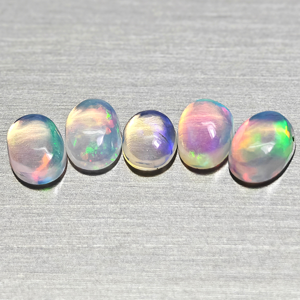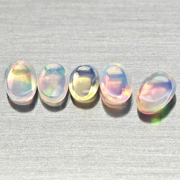 Natural Multi Color Opal 1.33 Ct. 5 Pcs Oval Cabochon Shape 6 x 4.1 Mm Gems
