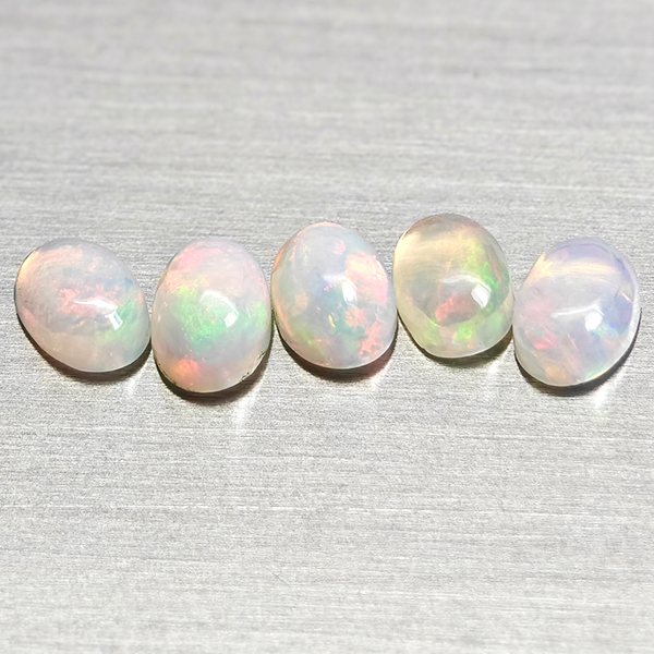 Natural Multi Color Opal 1.63 Ct. 5 Pcs Oval Cabochon Shape 6.2 x 4.2 Mm Gems