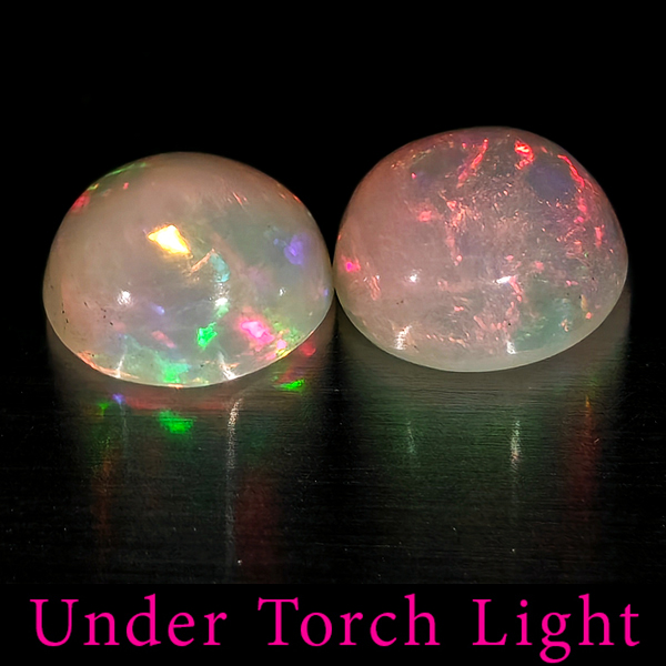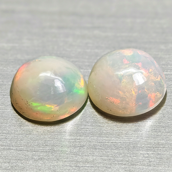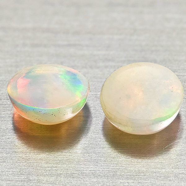Natural Multi Color Opal 1.57 Ct. 2 Pcs Round Cabochon Shape 7 Mm Gemstones