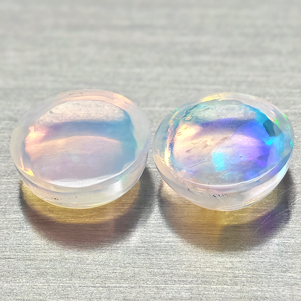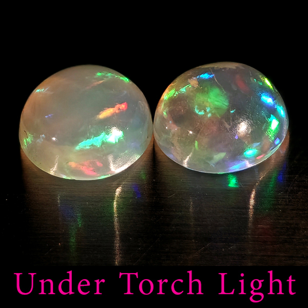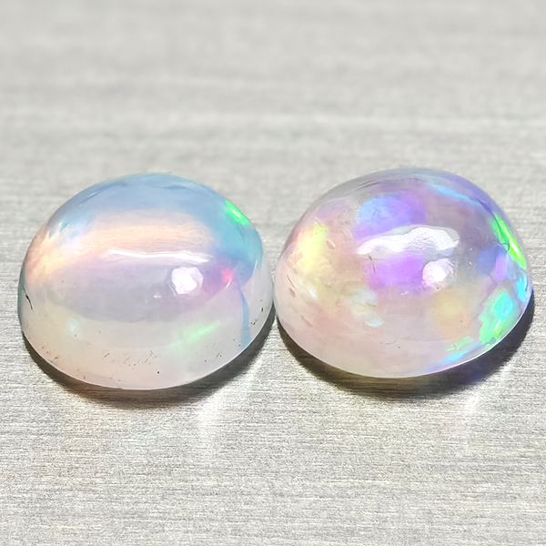 Natural Multi Color Opal 1.66 Ct. 2 Pcs Round Cabochon Shape 6.9 Mm Gemstones