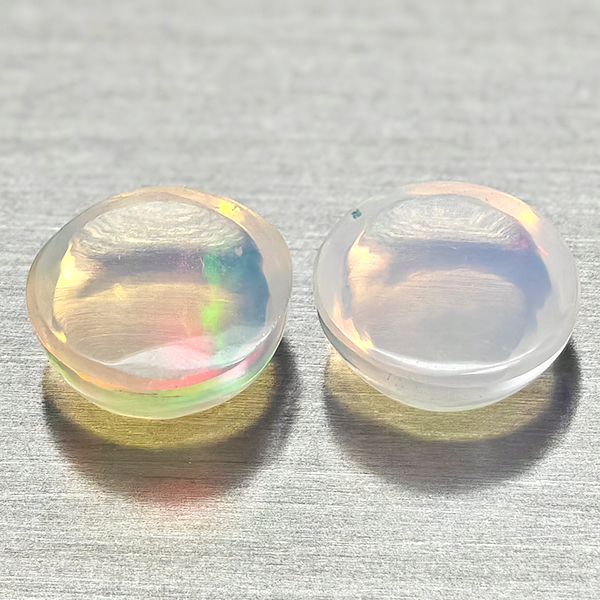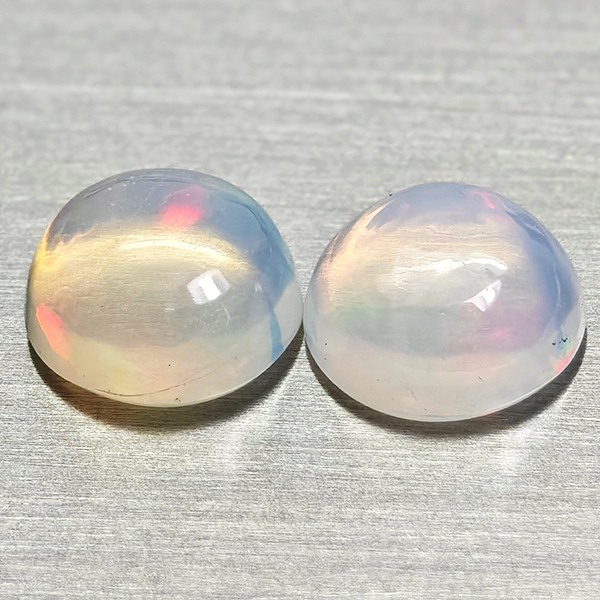 Natural Multi Color Opal 1.36 Ct. 2 Pcs Round Cabochon Shape 6.9 Mm Gemstones