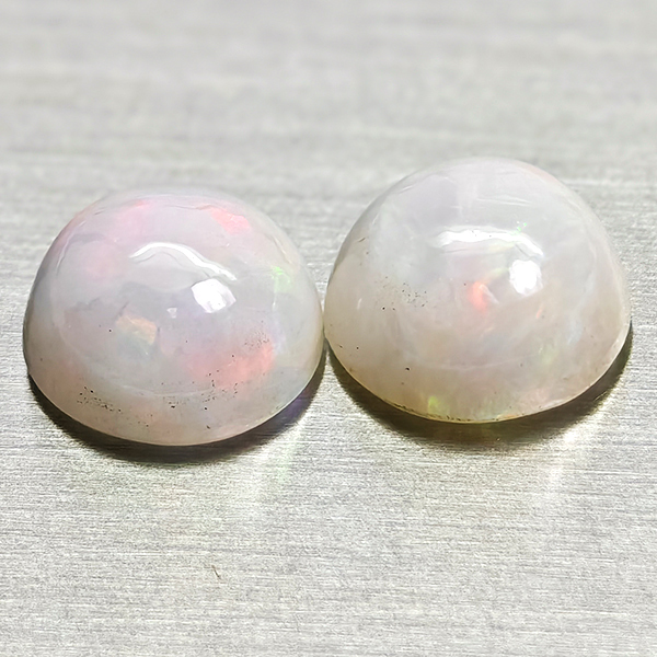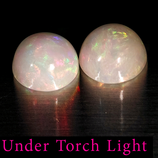 Natural Multi Color Opal 1.87 Ct. 2 Pcs Round Cabochon Shape 7 Mm Gemstones