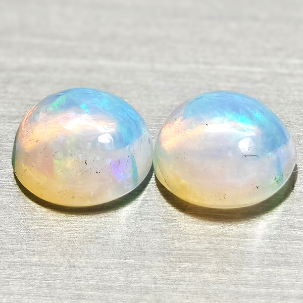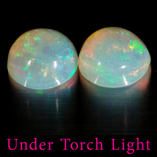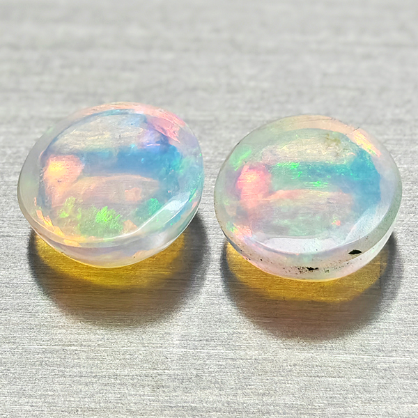 Natural Multi Color Opal 1.78 Ct. 2 Pcs Round Cabochon Shape 7 Mm Gemstones