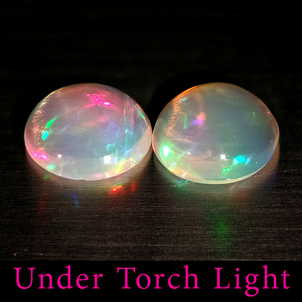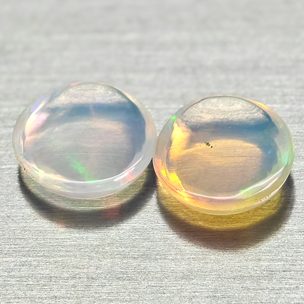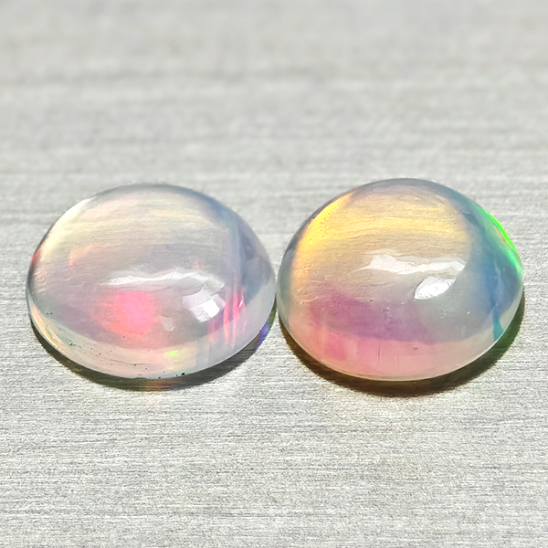 Natural Multi Color Opal 1.07 Ct. 2 Pcs Round Cabochon Shape 6.8 Mm Gemstones