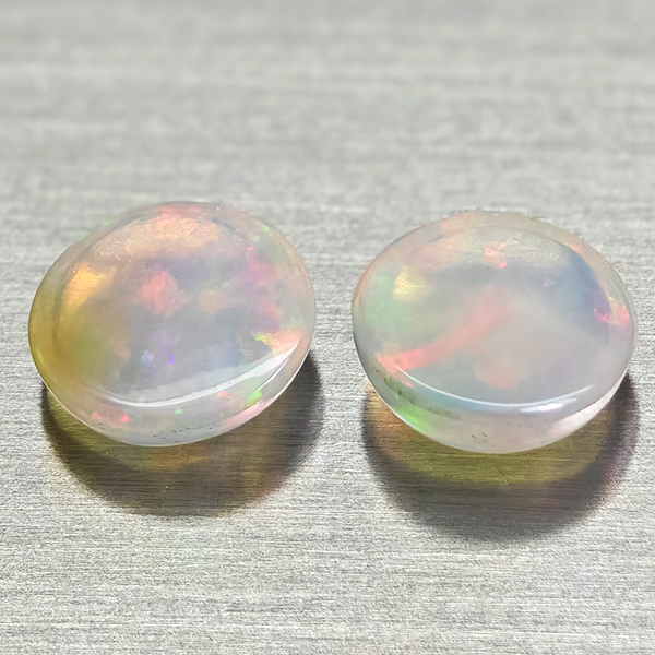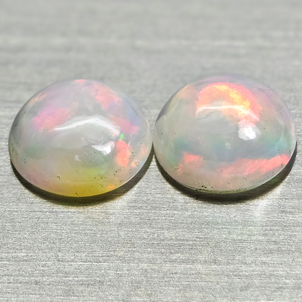 Natural Multi Color Opal 1.46 Ct. 2 Pcs Round Cabochon Shape 7 Mm Gemstones
