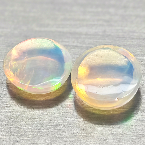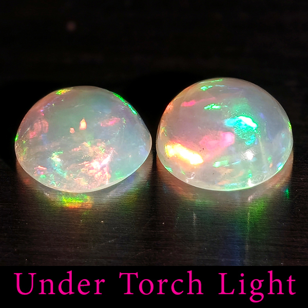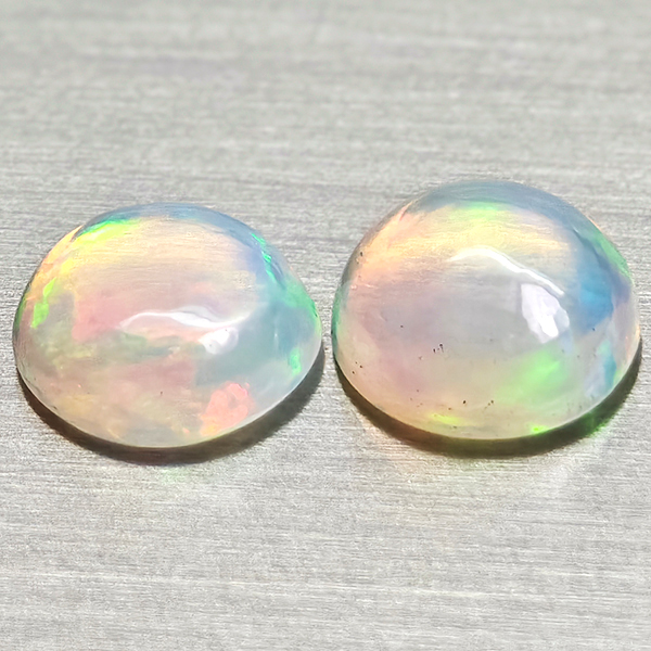 Natural Multi Color Opal 1.23 Ct. 2 Pcs Round Cabochon Shape 6.8 Mm Gemstones