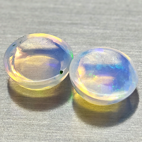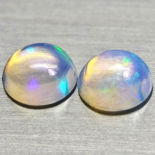 Natural Multi Color Opal 1.35 Ct. 2 Pcs Round Cabochon Shape 6.7 Mm Gemstones