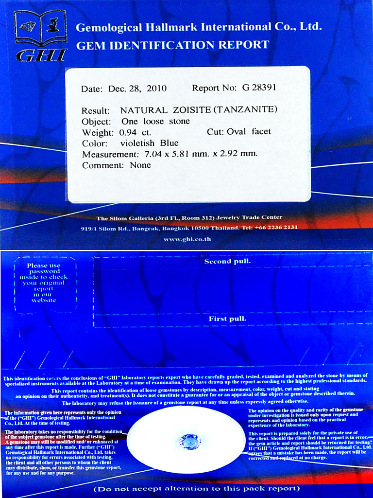 Certified Violetish Blue Tanzanite 0.94 Ct. Clean Natural Gemstone Oval Shape