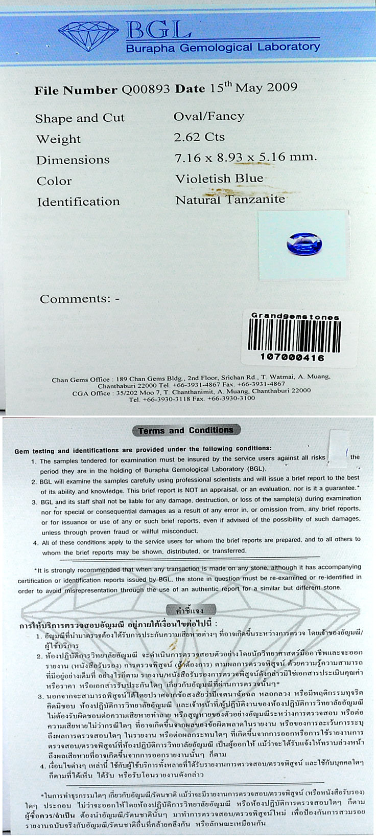 2.62 Ct. Oval Shape Natural Gemstone Violetish Blue Tanzanite From Tanzania