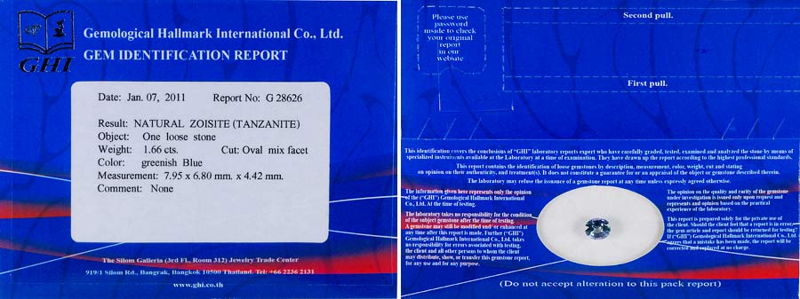 Certified Greenish Blue Tanzanite 1.66 Ct. Oval Shape 7.95 x 6.80 Mm Natural Gem