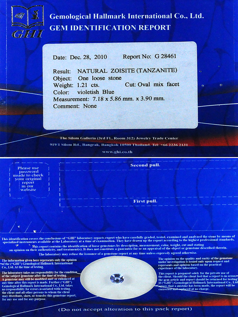Tanzanite Violetish Blue Certified 1.21 Ct. Clean Oval Shape Natural Gemstone