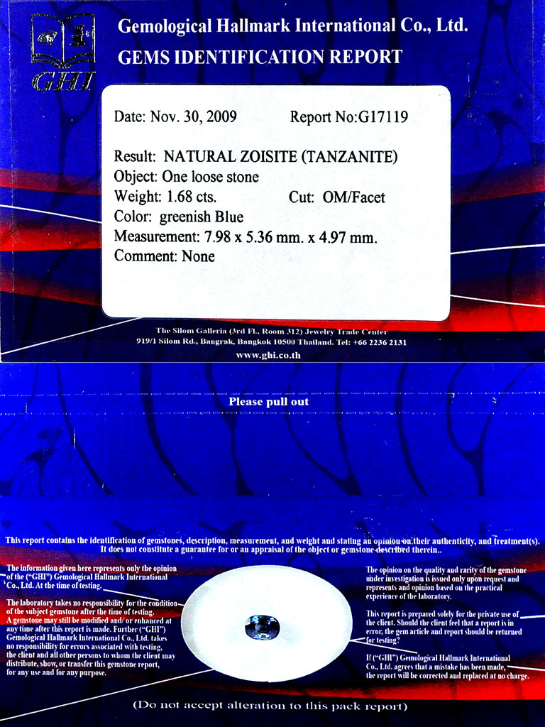 Certified Natural Violet Blue Tanzanite 1.68 Ct. Clean Oval 7.98 x 5.36 Mm Gem