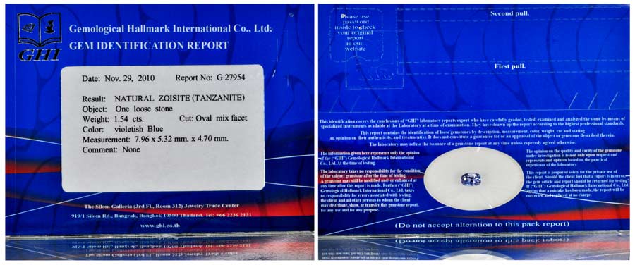 Certified 1.54 Ct Oval Natural Violetish Blue Tanzanite