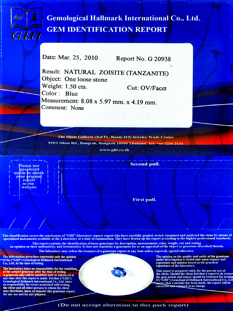 Certified 1.50 Ct. Clean Oval Shape Natural Gem Blue Tanzanite From Tanzania