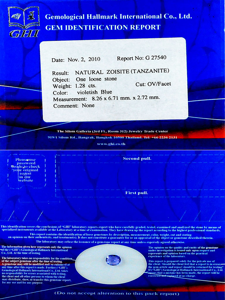 Certified 1.28 Ct. Oval Shape Natural Gem Violetish Blue Tanzanite From Tanzania