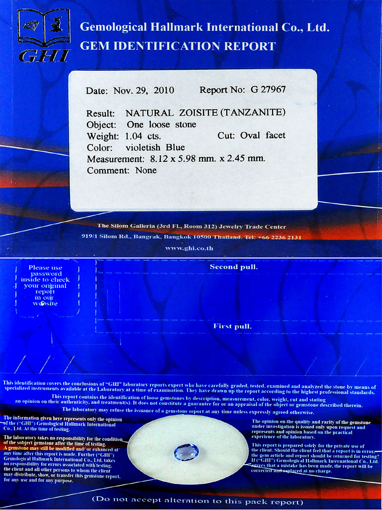 1.04Ct. Oval Shape Natural Gemstone Clean Violetish Blue Tanzanite From Tanzania