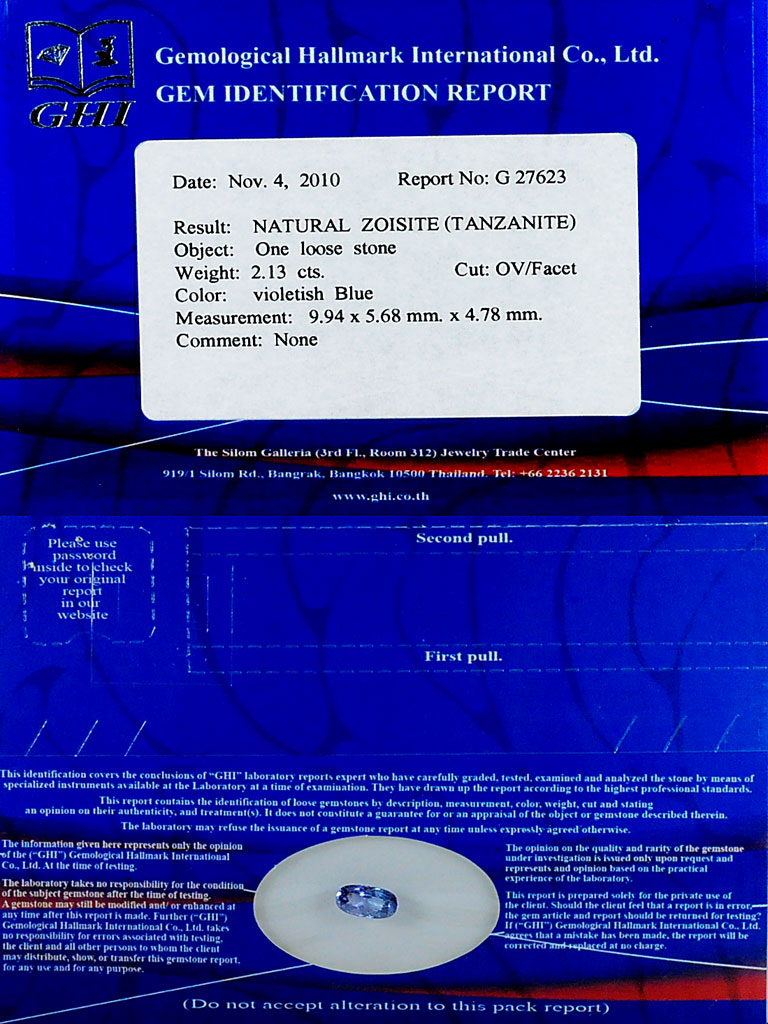 Certified 2.13 Ct. Natural Oval Shape Violetish Blue Tanzanite Gemstone