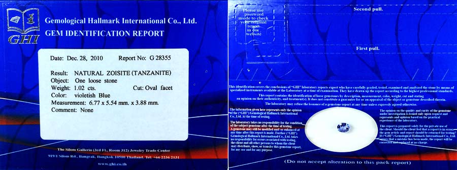 Certified 1.02 Ct. Clean Oval Shape Natural Gem Violetish Blue Tanzanite