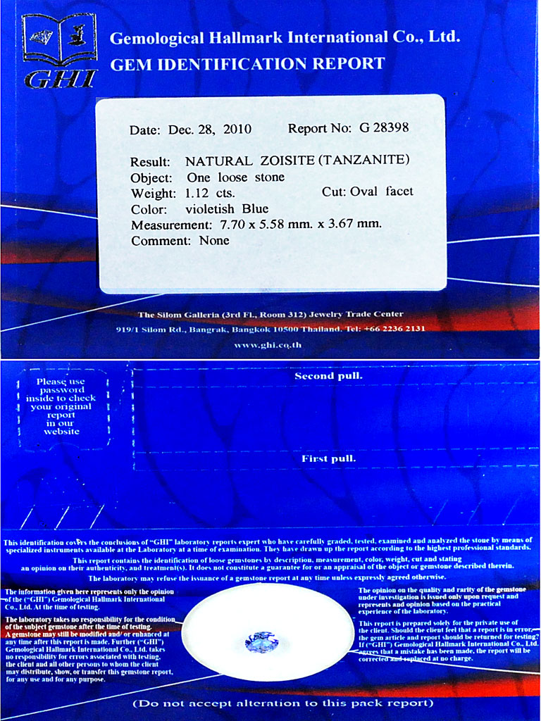 Certified 1.12 Ct. Clean Natural Gem Violetish Blue Tanzanite From Tanzania