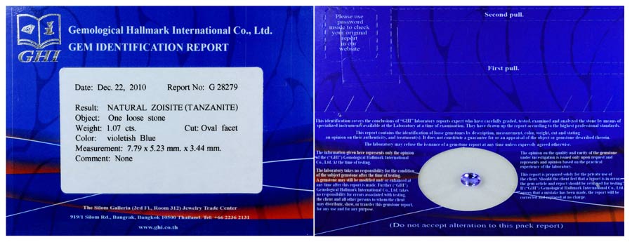 Certified 1.07 Ct. Clean Oval Shape Natural Violetish Blue Tanzanite