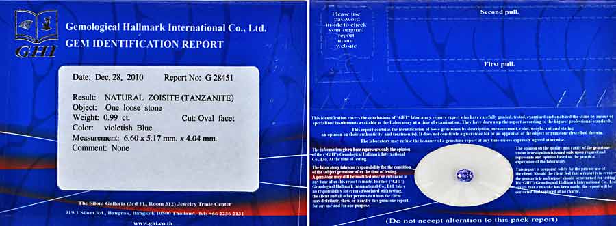 Certified 0.99 Ct. Clean Oval Shape Natural Gem Violetish Blue Tanzanite