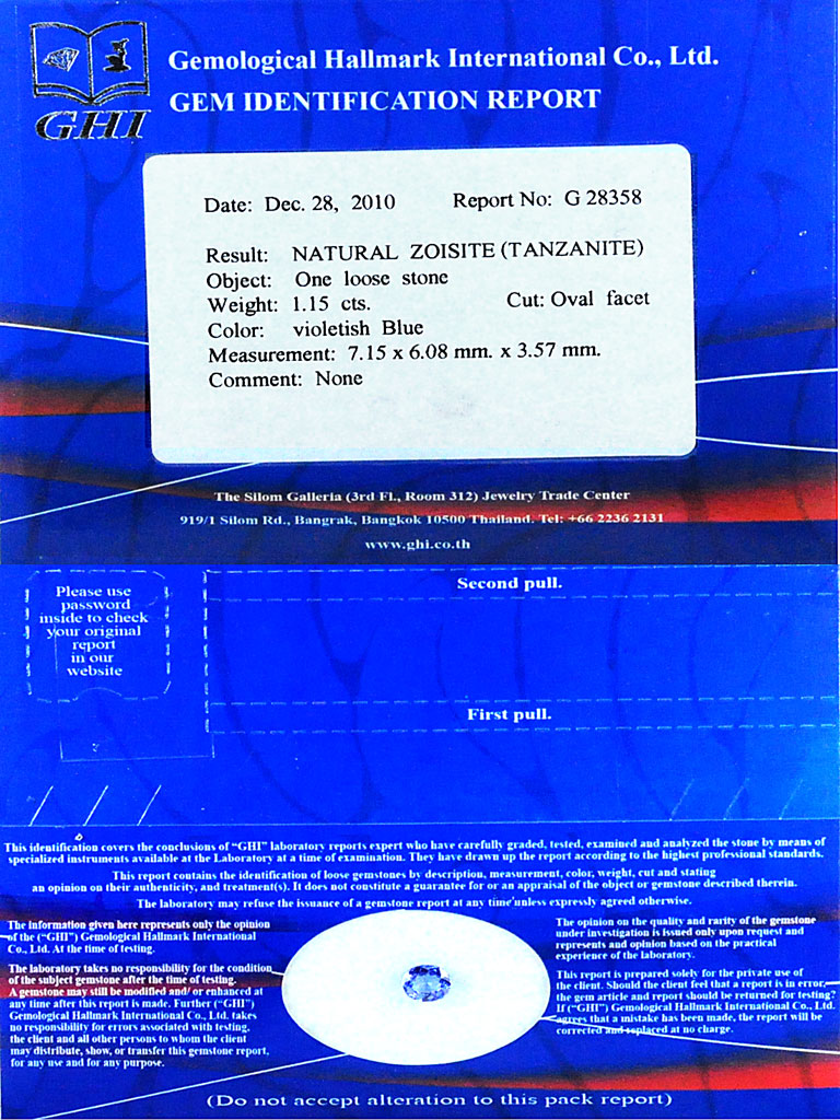 Certified Violetish Blue Tanzanite 1.15 Ct. Oval Shape Natural Gemstone Tanzania