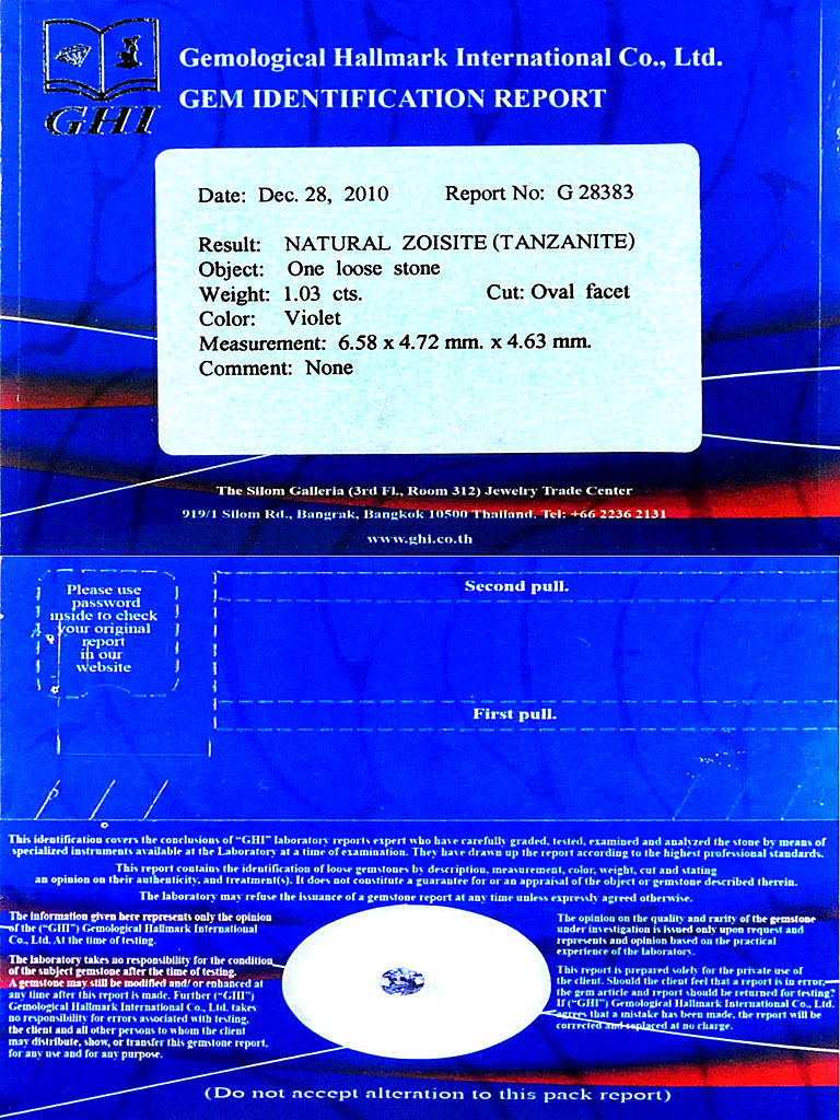 Certified 1.03 Ct. Oval Shape Natural Gem Violet Tanzanite From Tanzania