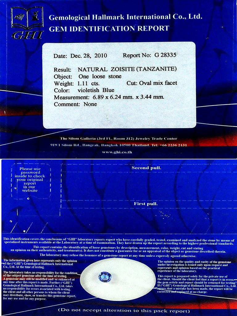 Certified Violetish Blue Tanzanite 1.11 Ct Oval Shape 6.89 x 6.24 Mm Natural Gem
