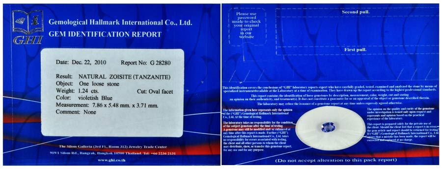 Certified Violetish Blue Tanzanite 1.24 Ct. Clean Oval Shape Natural Gemstone