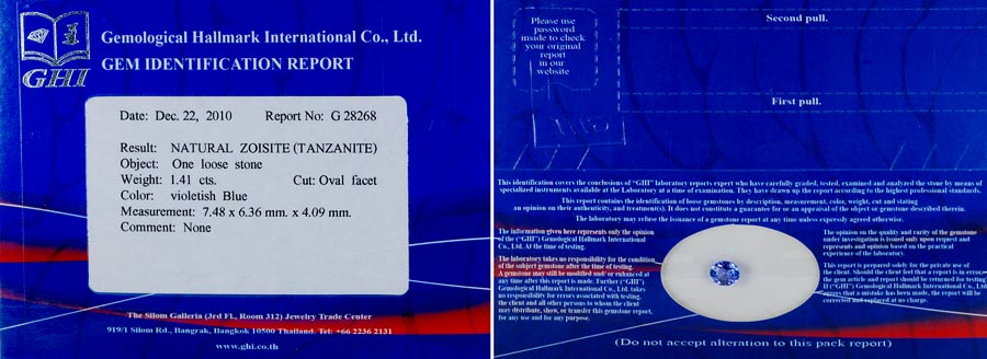 Certified 1.41 Ct. Clean Oval Shape Natural Gem Violetish Blue Tanzanite